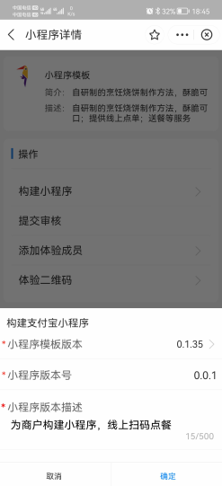 - 输入小程序版本号,格式,例如【0.0.1】;(注意:小程序版本格式必须为【数字.数字.数字】的形式,且数字均为大于等于0的正整数;小程序版本号必须大于列表中的当前版本号)