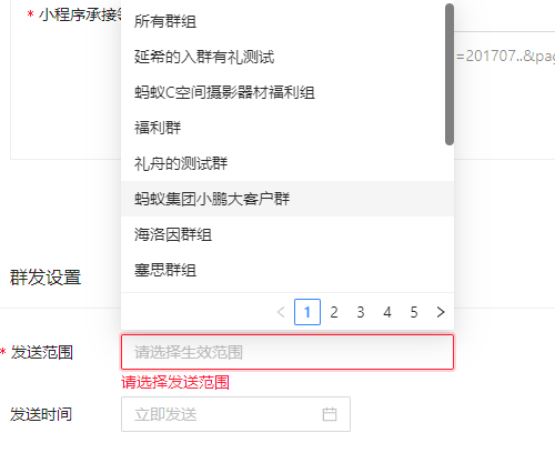 - 发送范围:可选择账号下全部群组,或某一指定群组