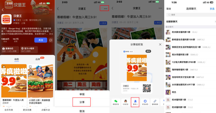- ②支付宝app手机端支持转发分享生活号内容至单个或多个群聊