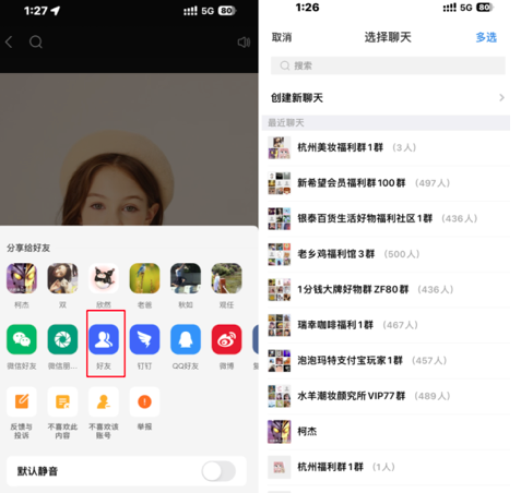 - 点击分享给“好友”---选择要分享的群组(可选多个群组,批量分享)
