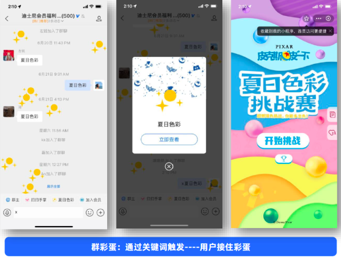 1.社群彩蛋玩法- 商家可自定义专属社群彩蛋(自定义彩蛋图标、触发关键词),通过消息触发全屏彩蛋,用户点击彩蛋后可领券或打开小程序,将商品、ip、营销结合让营销更有趣同时带动群内互动氛围