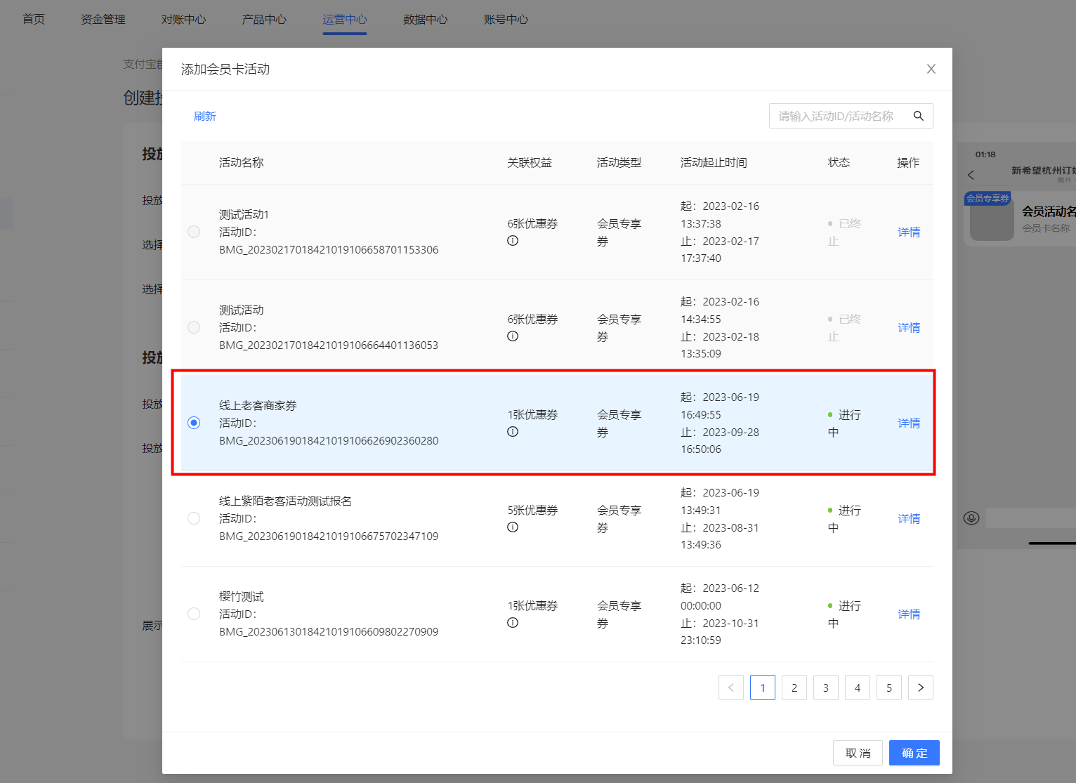 - ①登录支付宝商家中心,找到顶部运营位会员活动投放入口