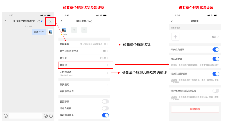 团购群管理-创建群组(群简介/欢迎语等)/解散群聊