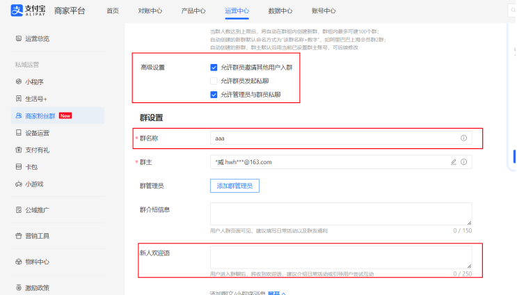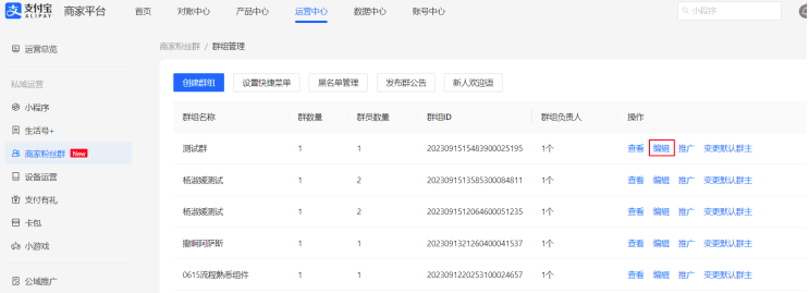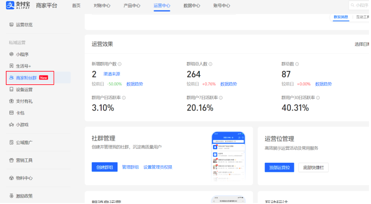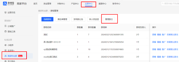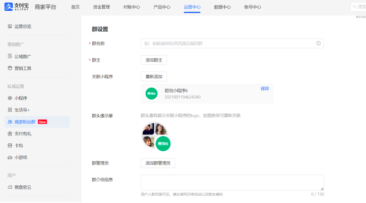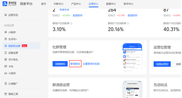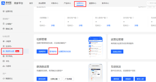 - 操作路径:登录支付宝商家平台-运营中心-商家粉丝群-创建群组