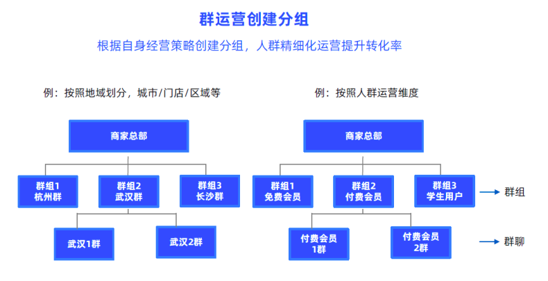 - 群组是指一类商家群的集合,便于商家统一管理与运营