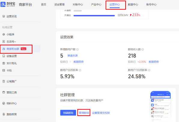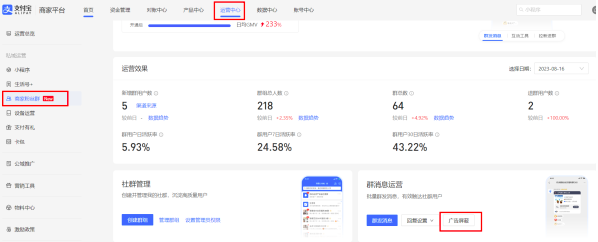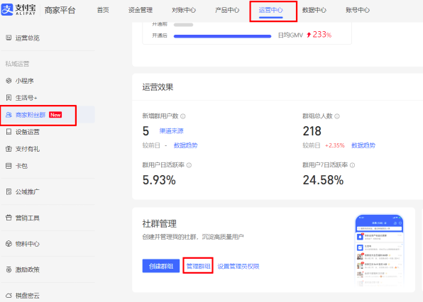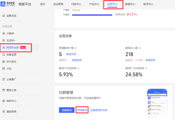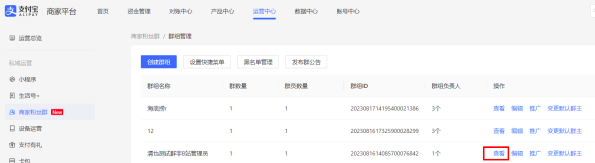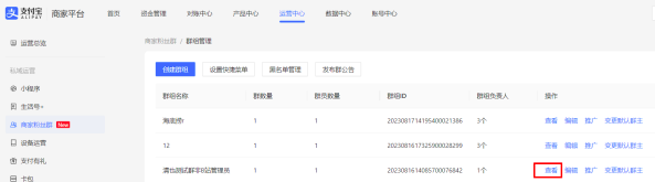 - 路径:登录支付宝商家平台---运营中心---商家粉丝群---管理群组
