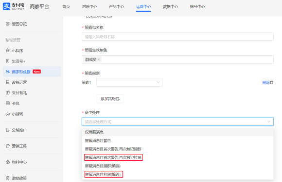 - 路径:登录支付宝商家平台---运营中心---商家粉丝群---广告屏蔽